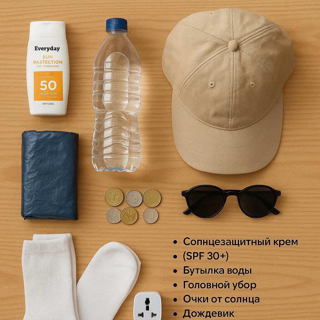 • 🧢 Панаму или кепку, солнцезащитные очки